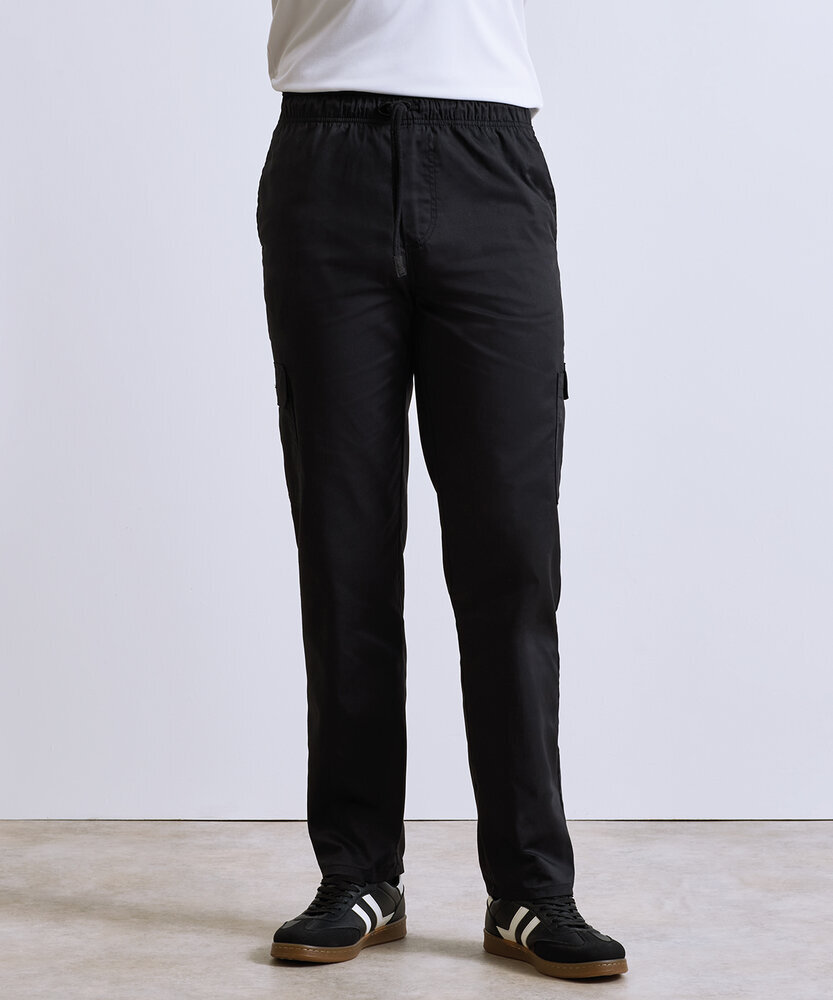 Typical cargo pocket detail on the legs with tear release fastening. Mobile friendly cargo style pockets. Elasticated waistband with drawcord. Single rear patch pocket with tear release fastening.