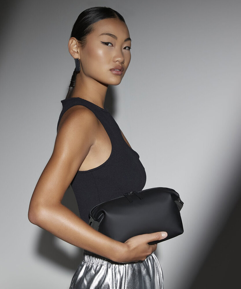 100% Recycled polyester with matte-look PU coating. PVC-free. Water-repellent fabric. Minimalist styling. Multipurpose use. One main compartment. Zipped closure. TearAway label for easy rebranding.
