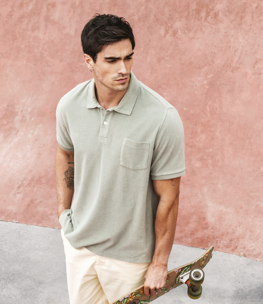 80% organic combed cotton/20% recycled polyester. Towelling fabric. Enzyme washed. Straight fit. Herringbone taped neck. Half moon back yoke. Two button placket. Left chest pocket. Side vents with herringbone trim. 1x1 ribbed cuffs. Twin needle hem. Tag free. Garment washed after assembly, colours may vary slightly. Recycled polyester is made from post-consumer waste. Special Order items are non-stock Items ordered from the supplier. These items are non-returnable, and lead times may vary.
