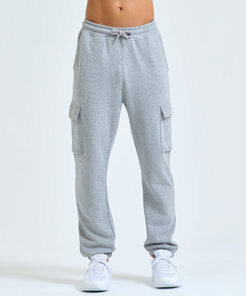 Soft feel. Inner brushed fleece. Recycled Polyester. Two front pockets. Cargo style pocket to either leg. Elasticated waistband and cuffs. Buttonhole stitched eyelets. Cords with painted metal ends. Unisex fit. We recommend using block out vinyl and inks. Product contains no branded neck or waist label. Removable Kimble or looped garment tags. Inner seam label holds important product information on one label with a second label containing brand information which can be cut-away.