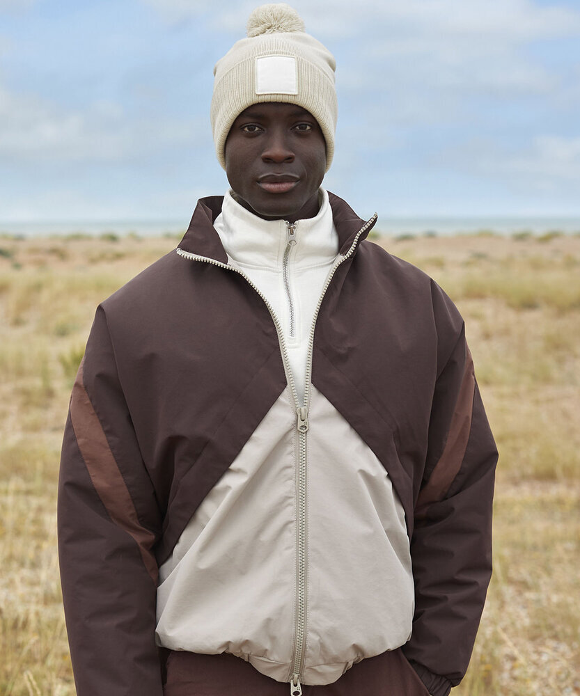 Contains 100% certified recycled material. Double layer knit. Cotton twill patch for decoration. Self-coloured pom pom. Microfleece lining for comfort and warmth. TearAway label for ease of rebranding.