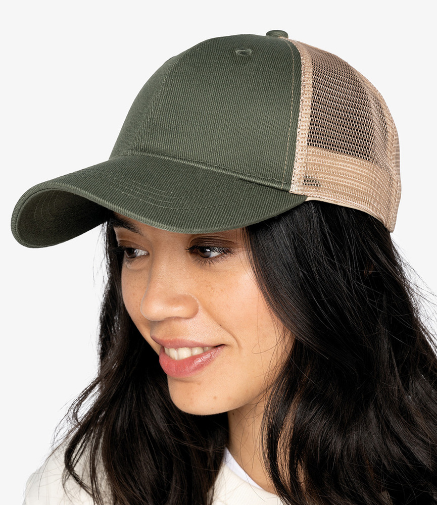 100% organic cotton twill. Recycled polyester mesh rear panels. 6 panel. Structured front panel. Pre-curved peak. Recycled plastic snapback size adjuster. Tag free. Special Order items are non-stock Items ordered from the supplier. These items are non-returnable, and lead times may vary.