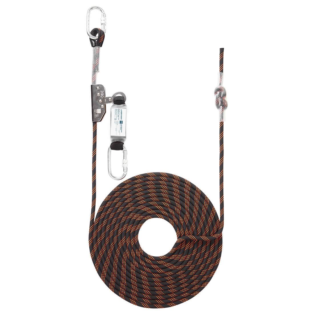 Fall arrest system with 12mm diameter kernmantle rope anchorage line with one non-openable rope grab (equipped with